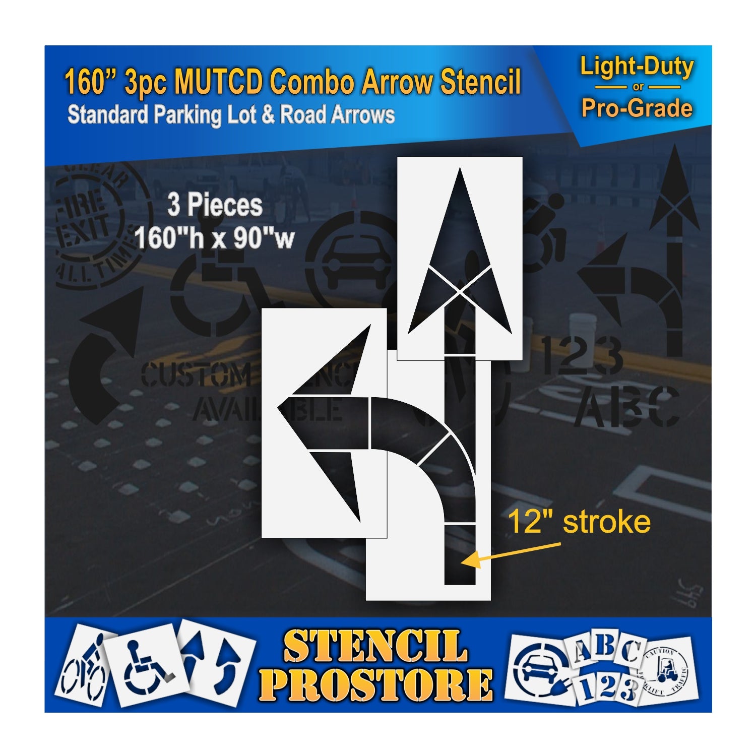 160 Inch 3pc MUTCD Combo Arrow Stencil – Parking Lot and Highway Stencil