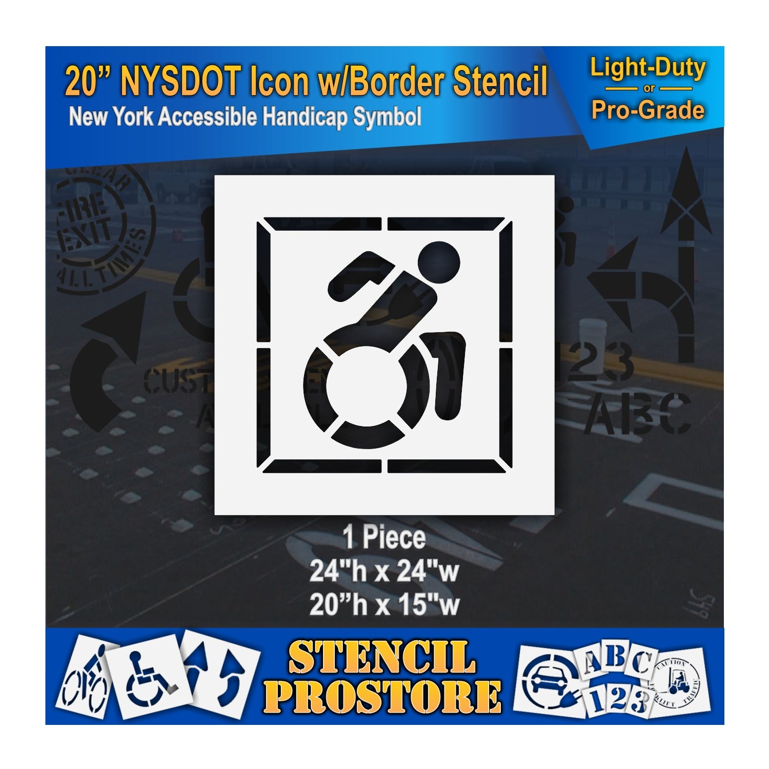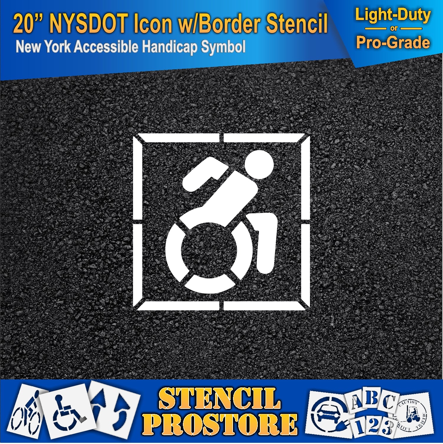 Make ADA-compliant pavement markings easy and professional with the 20 inch nysdot accessible icon with border pavement stencil from RAE Products. This stencil is designed for clear, consistent results on asphalt and concrete surfaces, making it the perfect choice for contractors, municipalities, and property managers who need reliable accessibility signage.