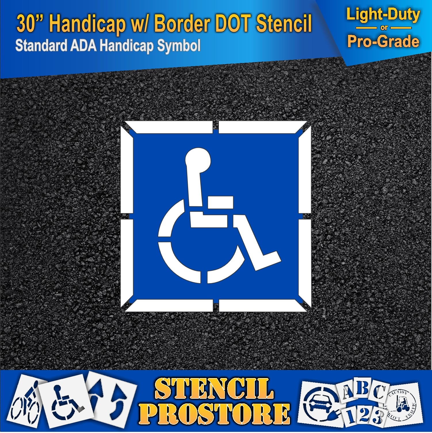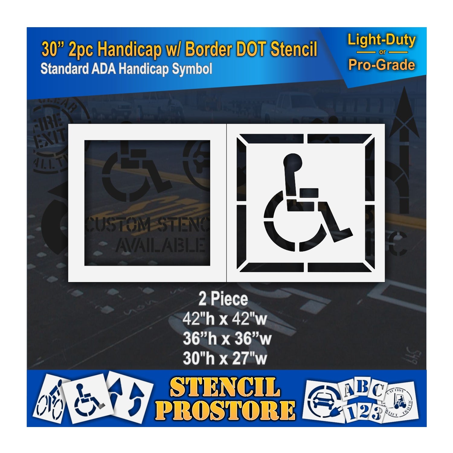 30 Inch 2pc Handicap with Border and Background Pavement Stencil – ADA-Compliant Stencil for Parking Lots