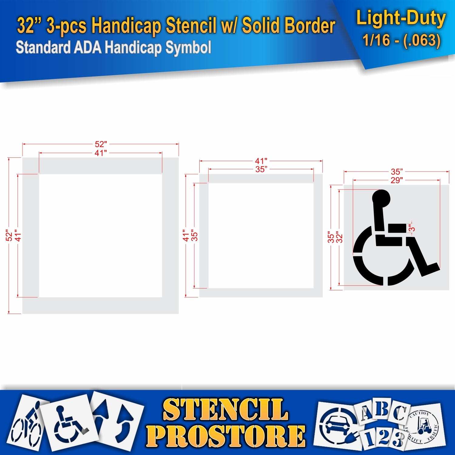32 Inch 3pc Handicap with Solid Border and Background Pavement Stencil – ADA-Compliant Stencil for Parking Lots