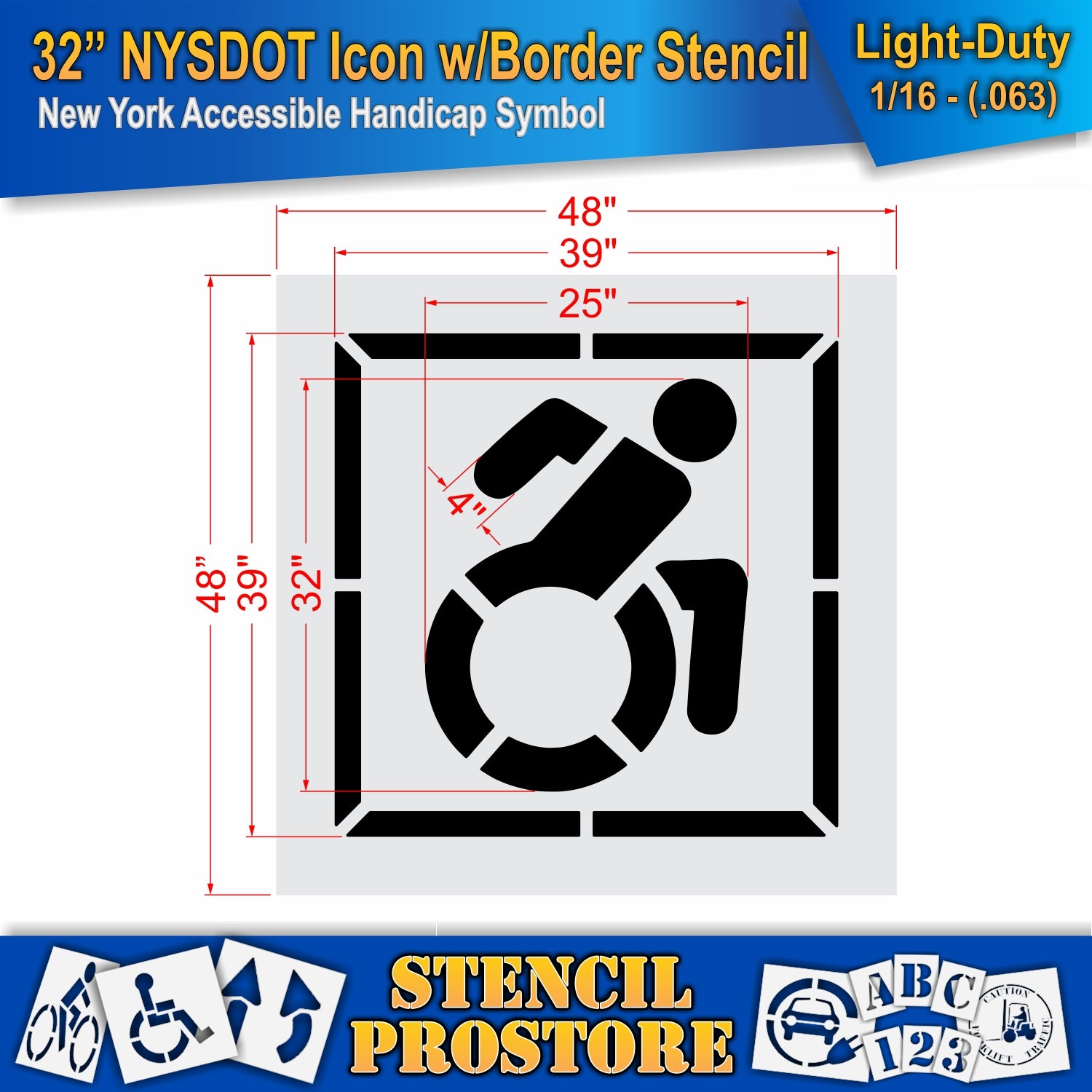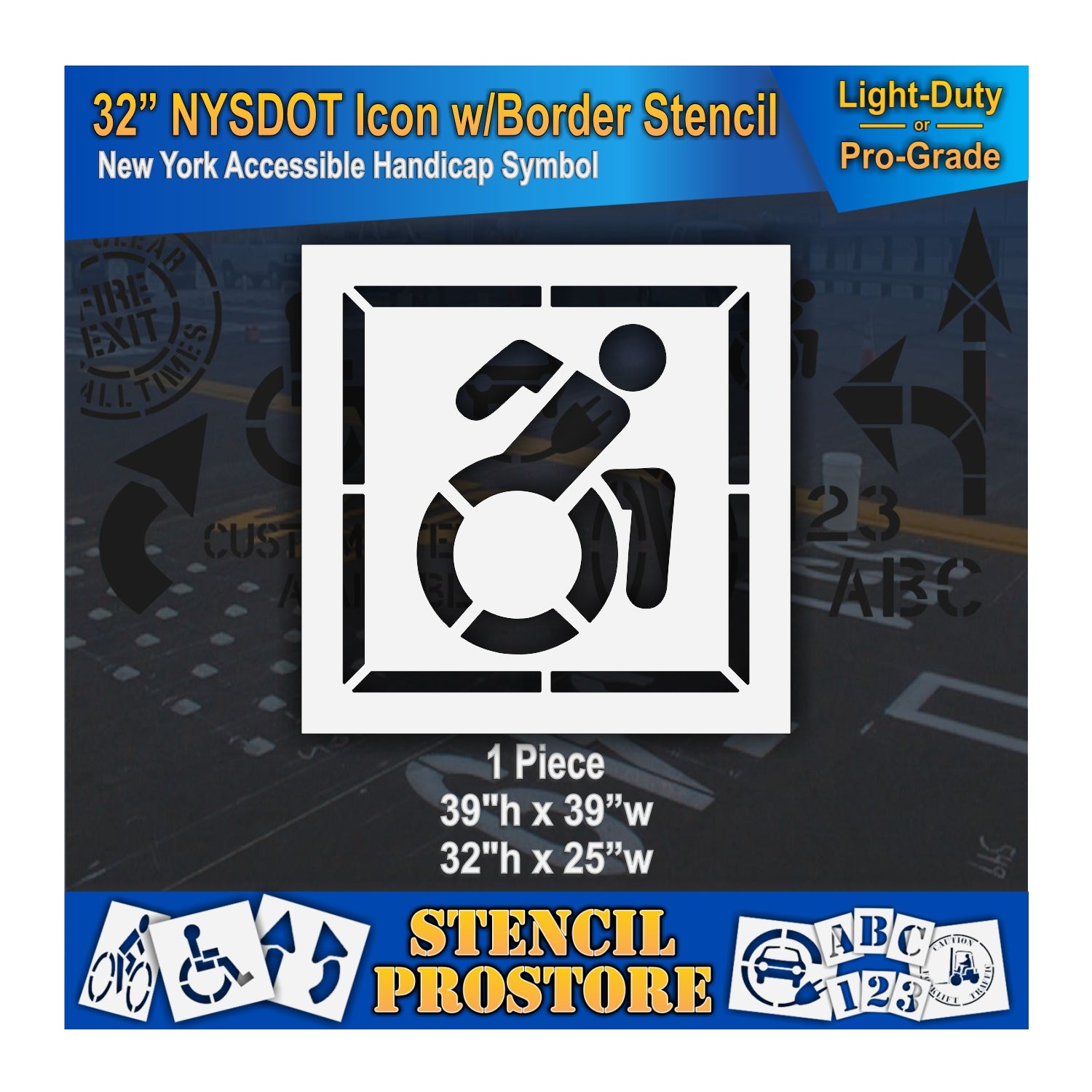 32 Inch NYSDOT Accessible Icon with Border Pavement Stencil – ADA-Compliant Stencil for Parking Lots