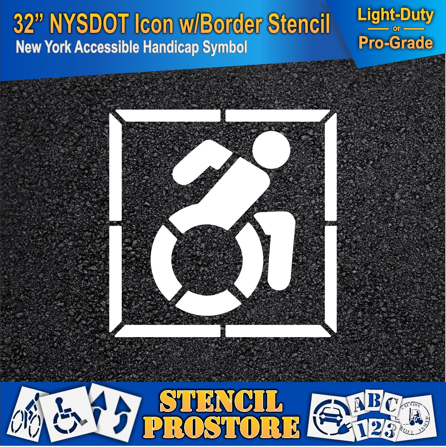 Make ADA-compliant pavement markings easy and professional with the 32 inch nysdot accessible icon with border pavement stencil from RAE Products. This stencil is designed for clear, consistent results on asphalt and concrete surfaces, making it the perfect choice for contractors, municipalities, and property managers who need reliable accessibility signage.