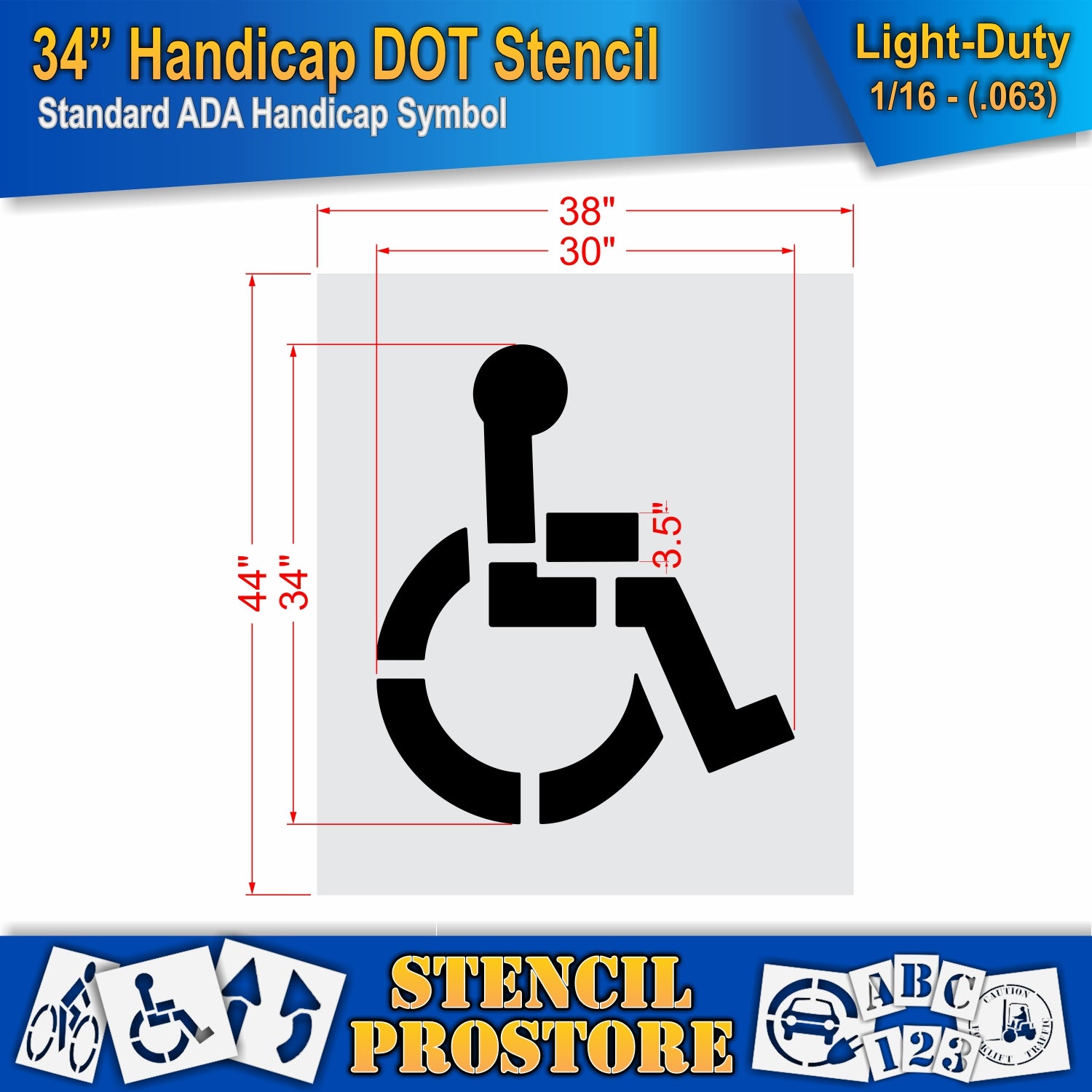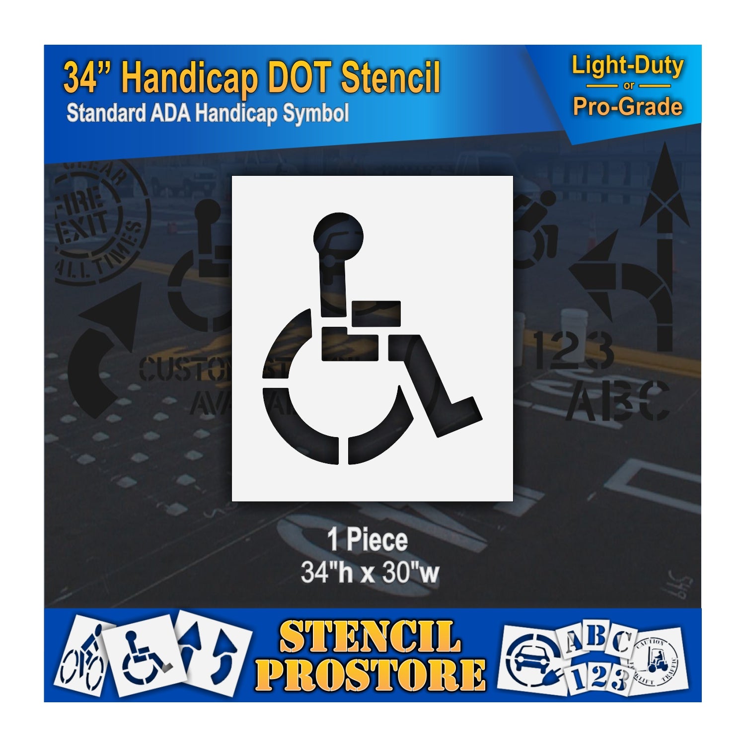 34 Inch Handicap Pavement Stencil – ADA-Compliant Stencil for Parking Lots