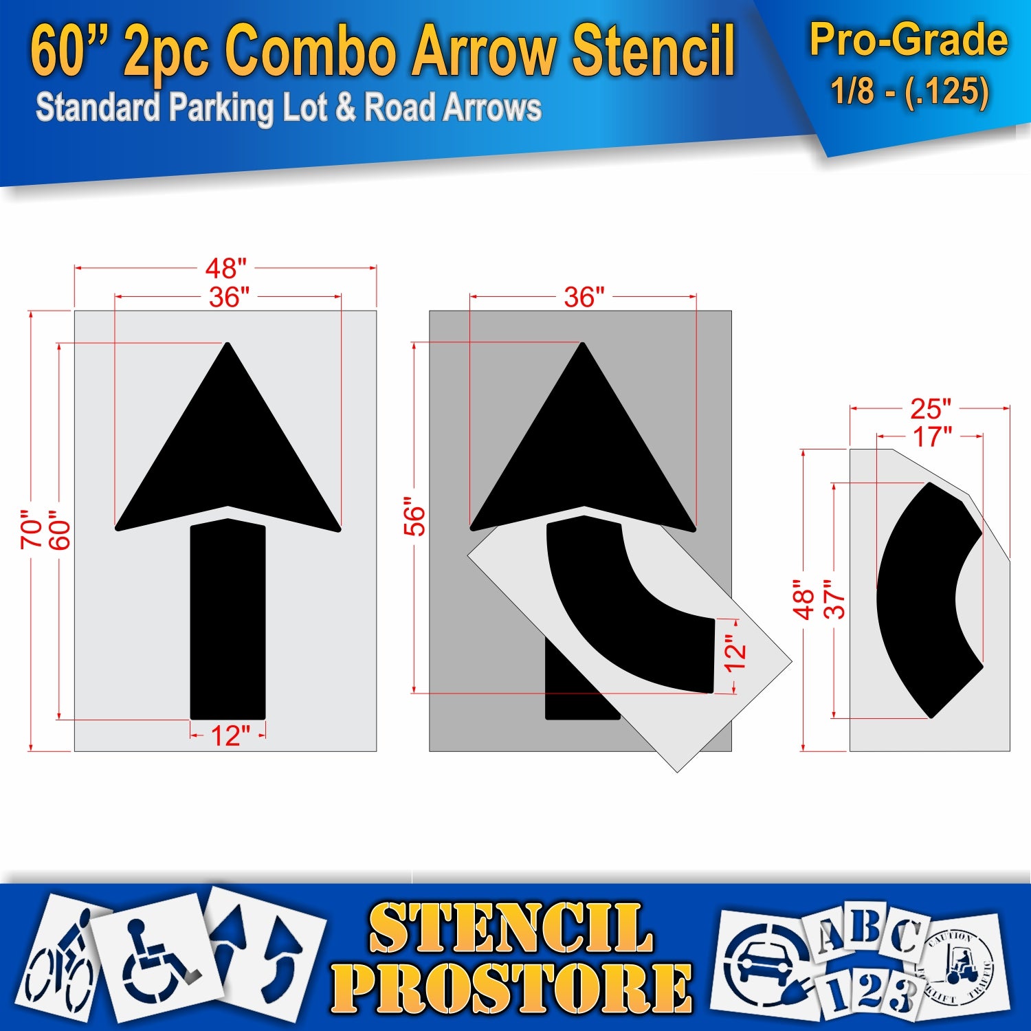 60 Inch 2pc Combo Arrow Stencil – Parking Lot and Highway Stencil