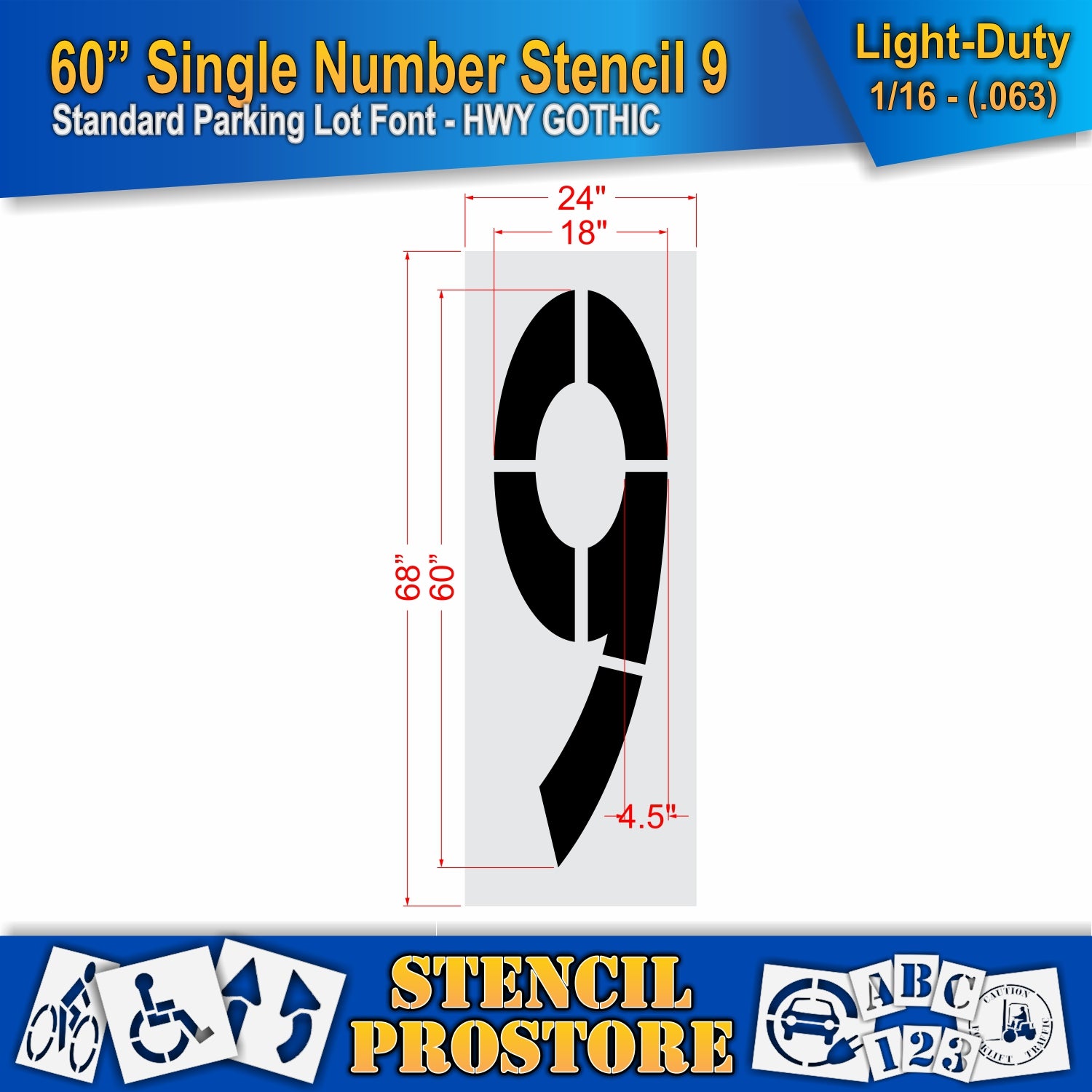 The 60 in Number Kit Stencil is a durable, reusable stencil set designed for small-scale marking projects. Featuring numbers 0-9, this kit is perfect for labeling, signage, and pavement marking.