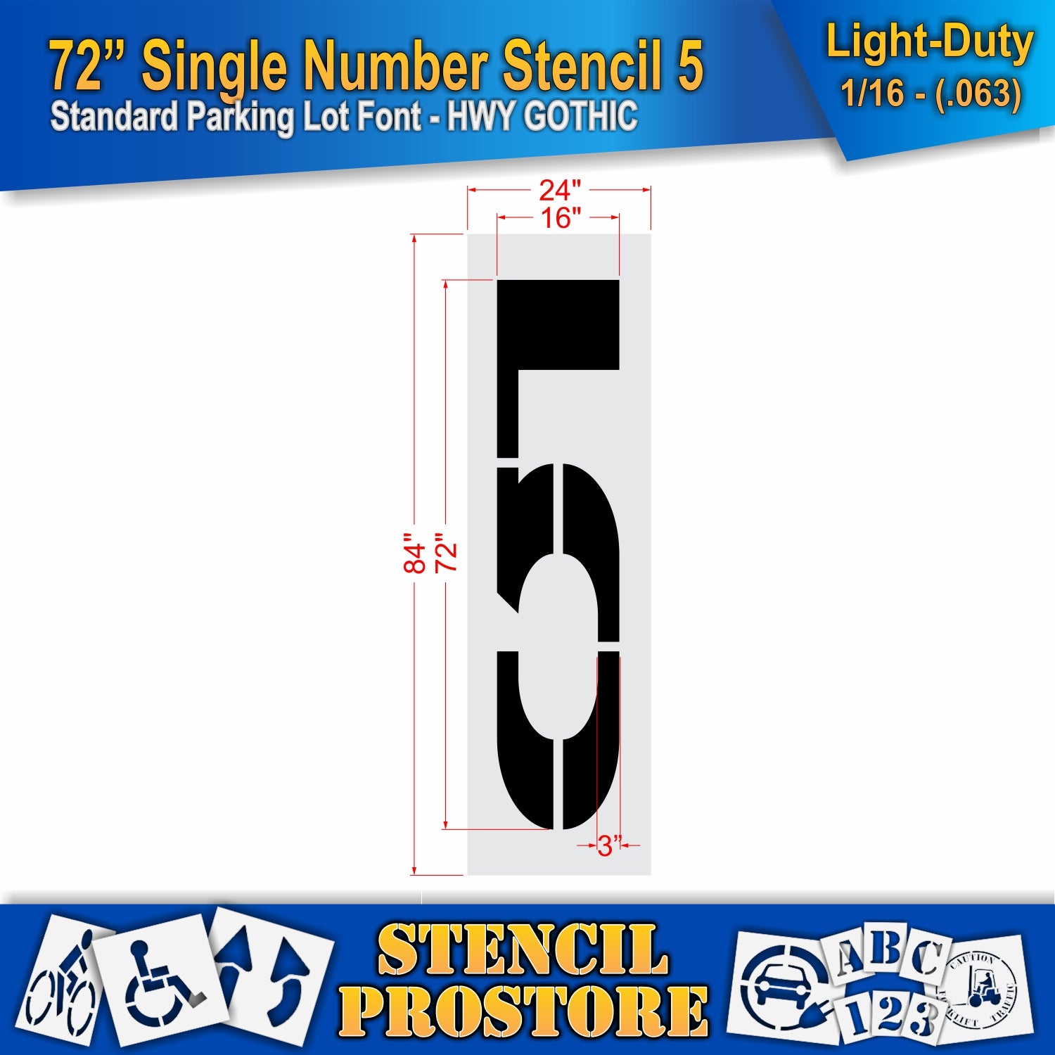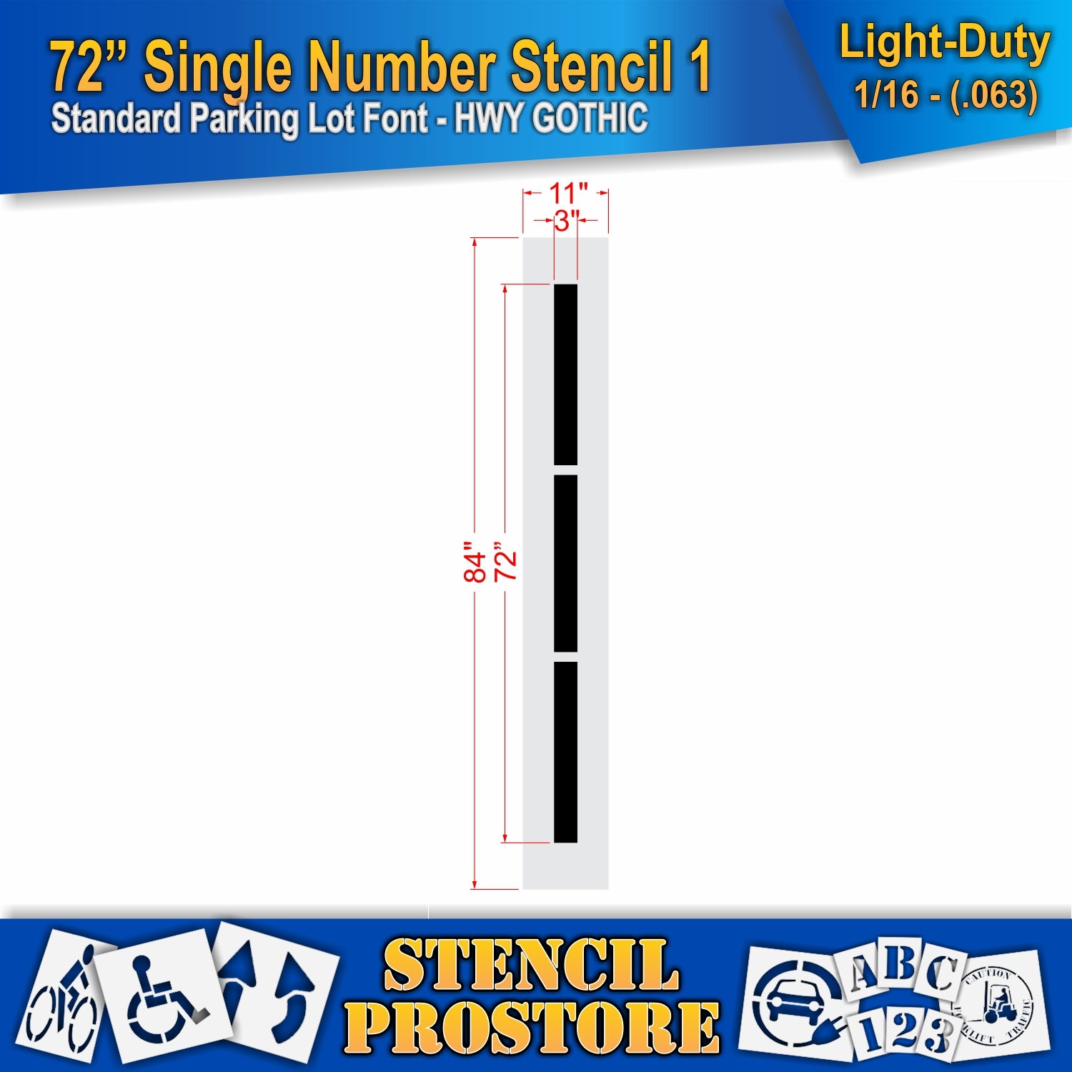 The 72 in Number Kit Stencil is a durable, reusable stencil set designed for small-scale marking projects. Featuring numbers 0-9, this kit is perfect for labeling, signage, and pavement marking.