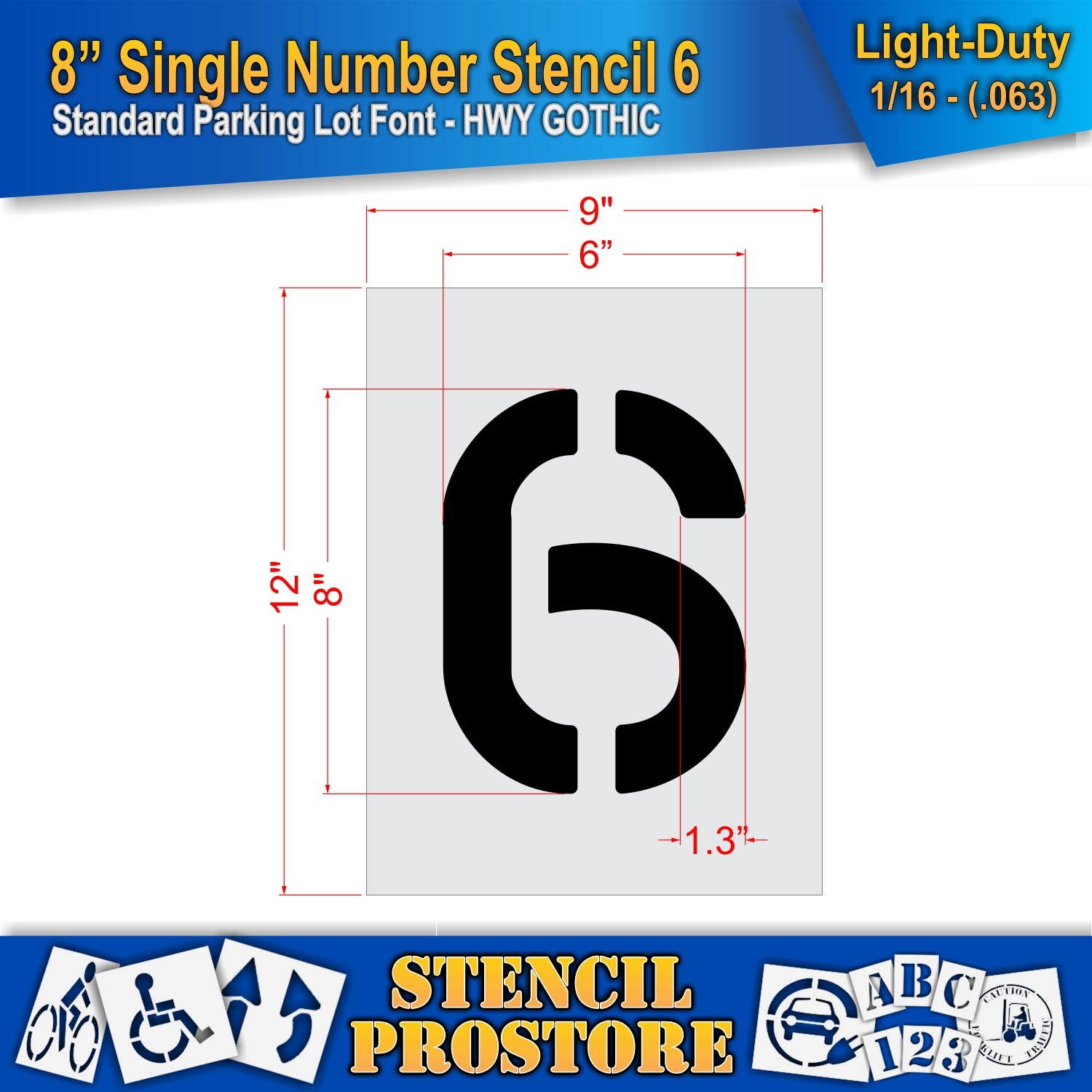 The 8 in Number Kit Stencil is a durable, reusable stencil set designed for small-scale marking projects. Featuring numbers 0-9, this kit is perfect for labeling, signage, and pavement marking. Made from high-quality plastic, these stencils ensure clean, professional results and can be used with paint, markers, or chalk.